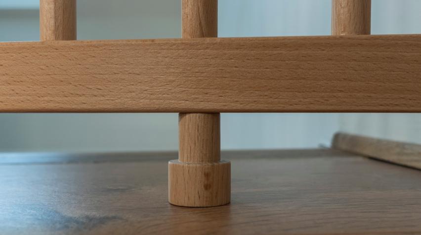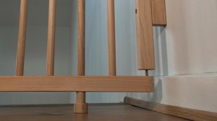 Grindene har ingen underkant som man kan snuble i, noe som gjør dem spesielt trygge på toppen av trappen. I tillegg har de føtter i massivt tre for ekstra stabilitet.