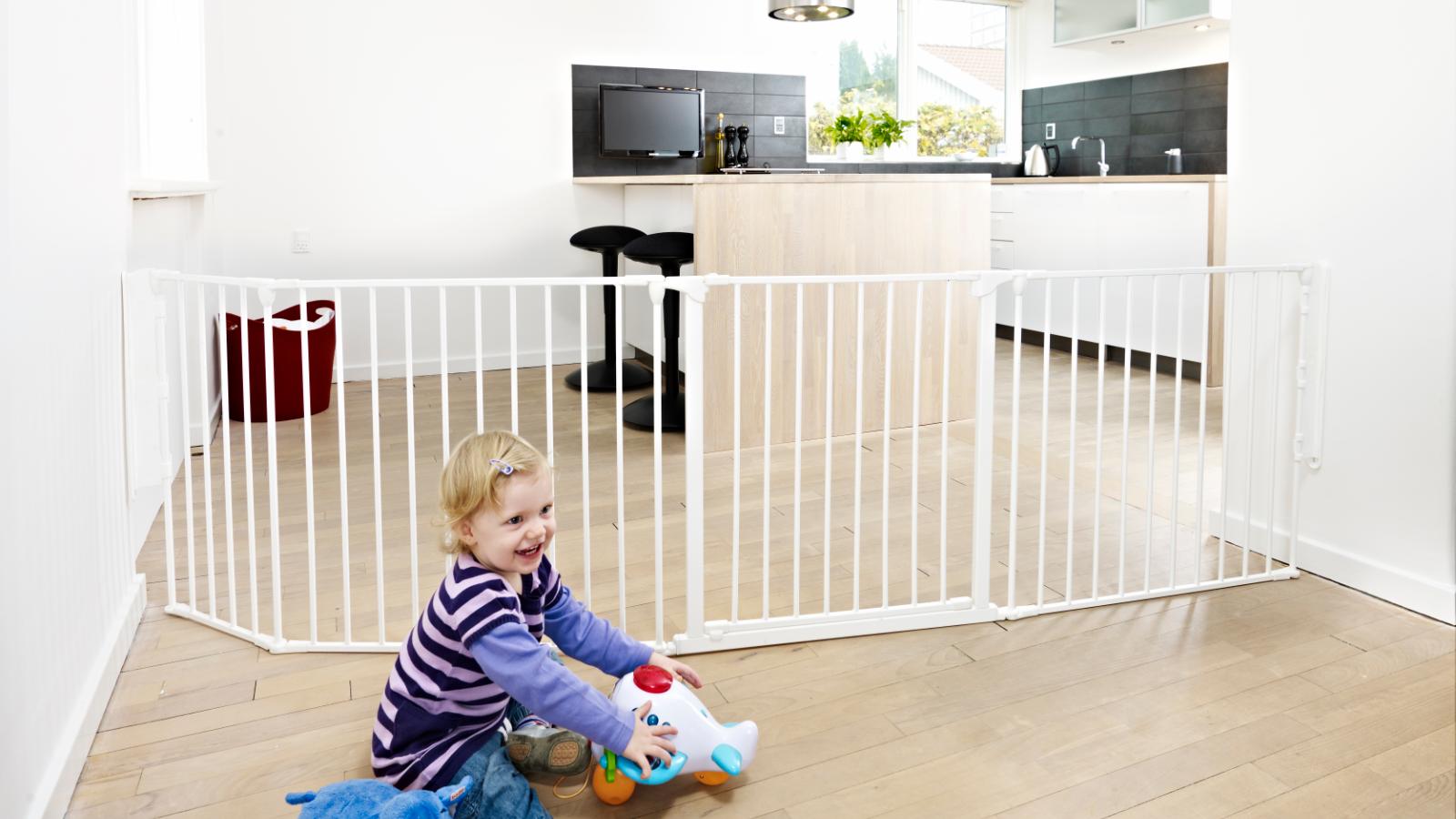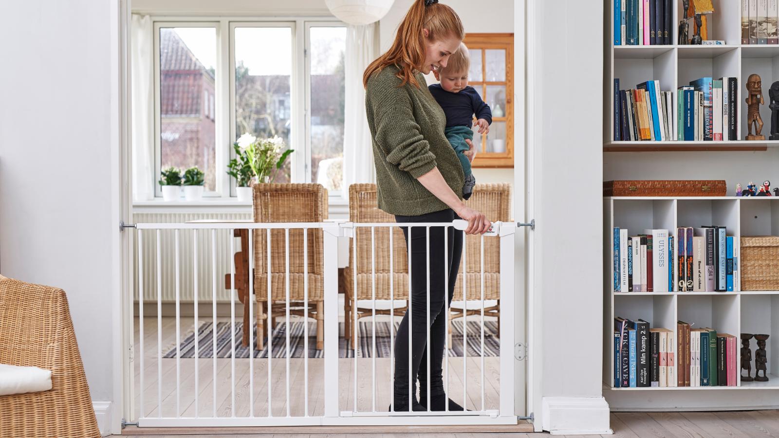 Vil du kunne avskjerme barnet ditt fra et område i hjemmet, som for eksempel i stuen eller på kjøkkenet? Du kan velge en sikkerhetsgrind som kan brukes som romdeler. Da kan du enkelt lage et barnesikkert område i rommet, og samtidig gjøre det lett for de voksne å bruke hele rommet.
