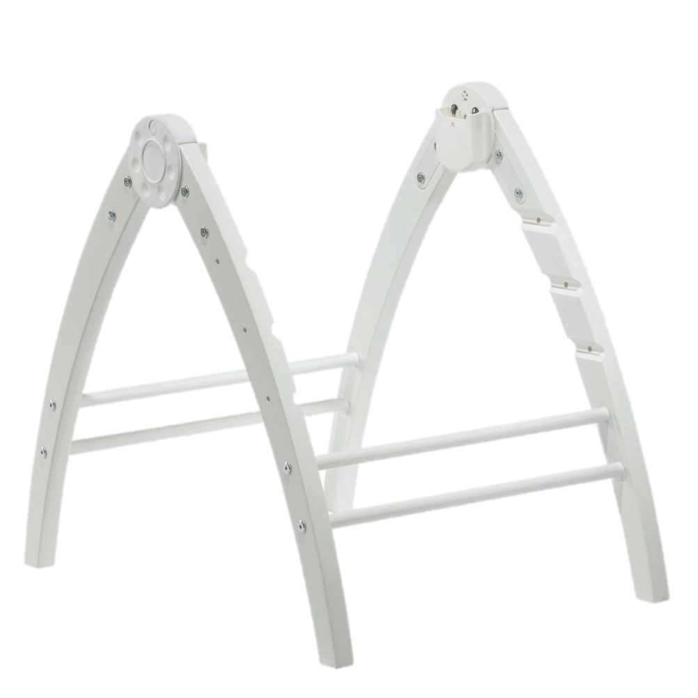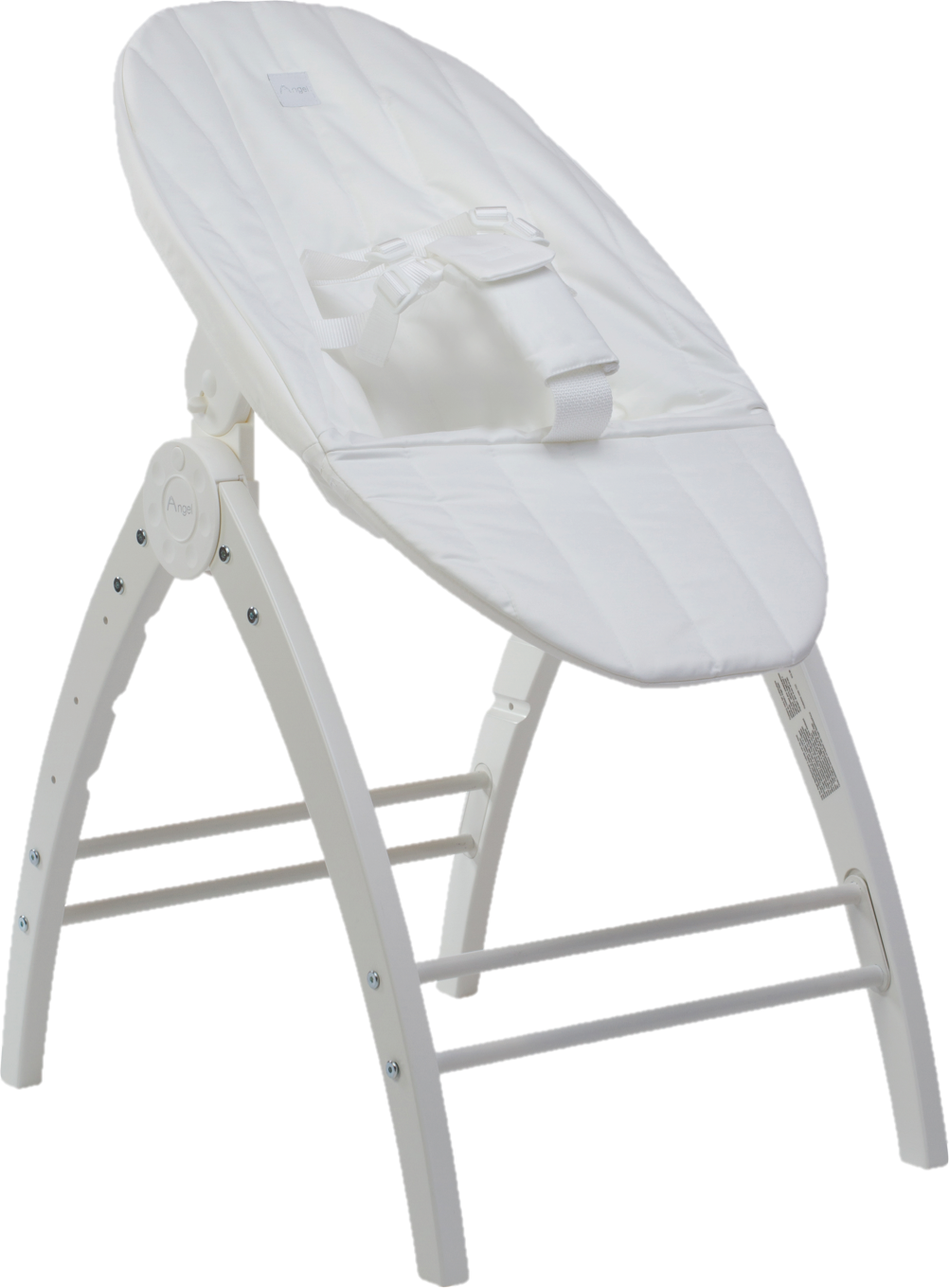 Det A-formede stativet er midtpunktet i Angel og binder alle delene sammen. Du kan enkelt klikke vuggen, skråstolen og høystolen av og på stativet. Det er også lett å slå sammen stativet hvis du ikke bruker det eller hvis dere skal ta det med dere. Det tar nesten ikke plass. Det er veldig lurt hvis dere f.eks. skal på middagsbesøk og vil ta med en vugge, skråstol eller høystol.