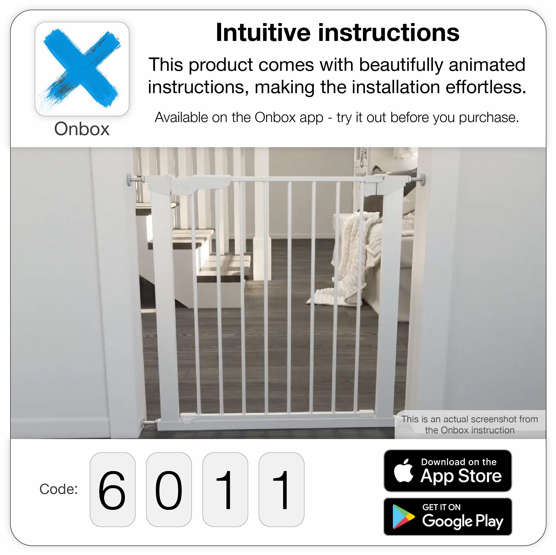 Forestill deg at bruksanvisningen til sikkerhetsgrinden er en animert video – Det er akkurat det Onbox-appen har. Der finner du små videoer som viser deg hva du skal gjøre trinn for trinn når du skal installere sikkerhetsproduktet hjemme. Du kan laste ned Onbox gratis i App Store og Google Play.
