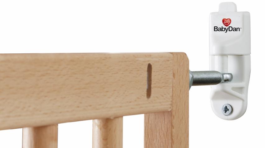 BabyDan MultiDan sikkerhetsgrinden er en flott løsning for enkel og praktisk barnesikring av hjemmet. Den skrus fast i en vegg eller dørkarm, og når den først er montert, kan den enkelt fjernes uten bruk av verktøy. Grinden kan også åpnes fra begge sider med én hånd, slik at du har den andre hånden fri til babyen, flasken, bamsen eller klesvasken.