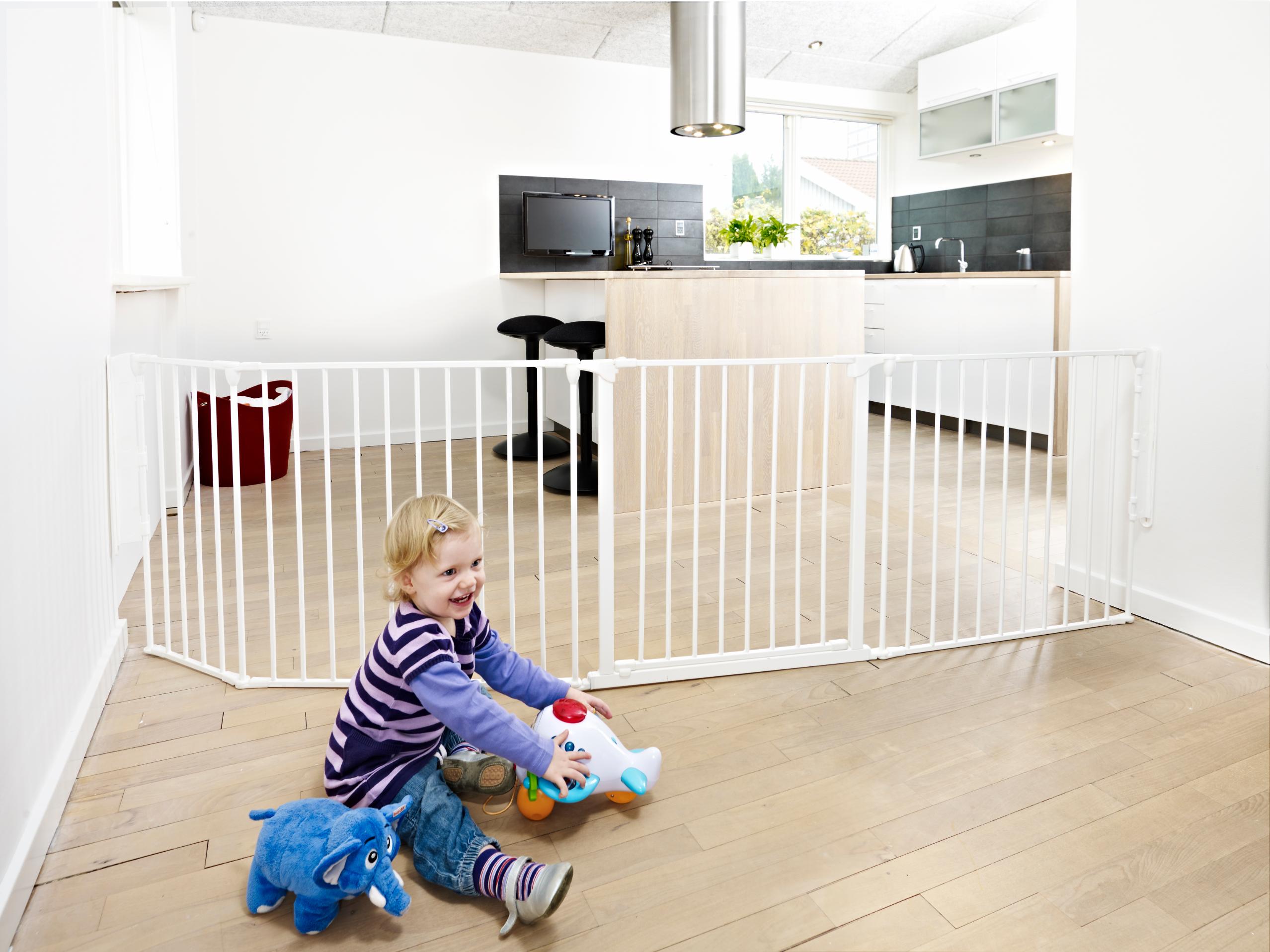 Sikkerhetsgrindene våre har en høyde på minst 65 cm opp til topprammen, og derfor kan du være trygg på at barnet ditt ikke kan klatre over grinden.
