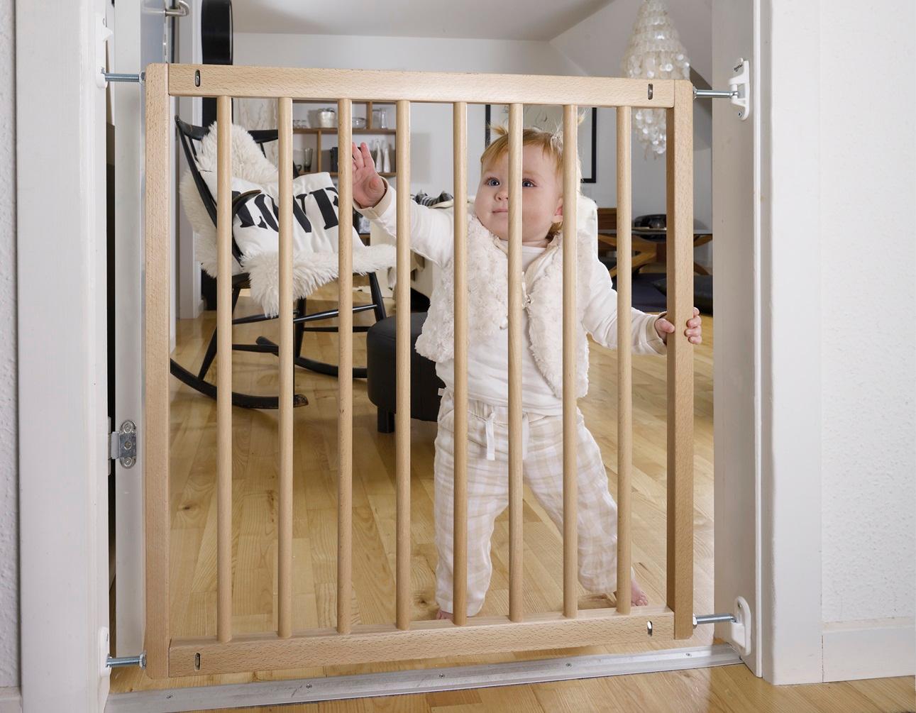 Når du setter opp en sikkerhetsgrind, vil barnet helt sikkert gå på oppdagelsesferd ved grinden for å undersøke hva det er for noe.