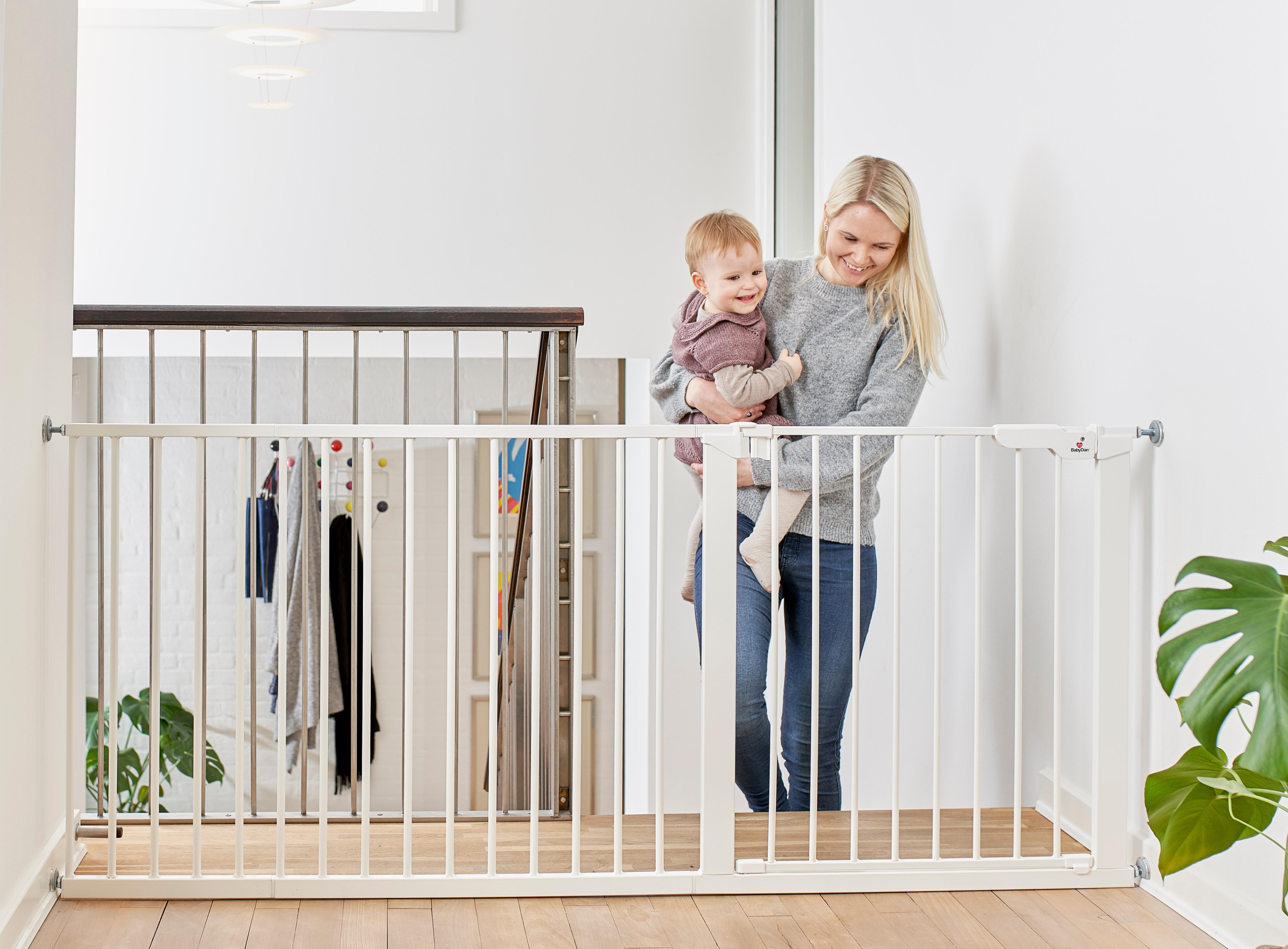 Sikkerhetsgrindene våre er produsert med materialer som er så sikre at barnet ditt kan sutte på grinden uten å få skadelige stoffer i kroppen – eller falle ned trappen og slå seg.