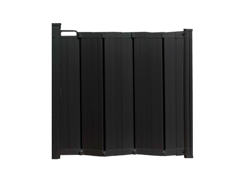 Guard Me sikkerhetsgrinden er veggmontert og en superpraktisk måte å barnesikre hjemmet ditt på. Grinden er laget av plast og finnes i svart og hvitt. Grindens automatiske foldemekanisme bretter den opp når du åpner døren.