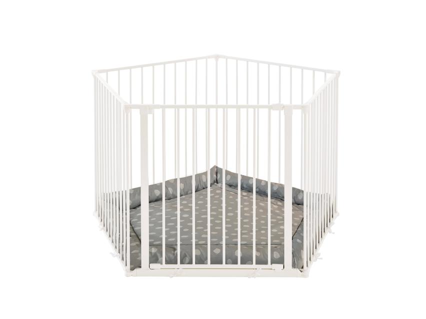 OLAF Pentagon lekegrind er en flott måte å skape et trygt sted for barnet ditt å leke. Lekegrinden fås i hvitt og svart og er laget av metall. Når barnet ikke lenger trenger en lekegrind, kan du enkelt gjøre den om til en sikkerhetsgrind.