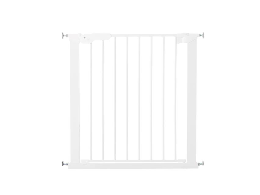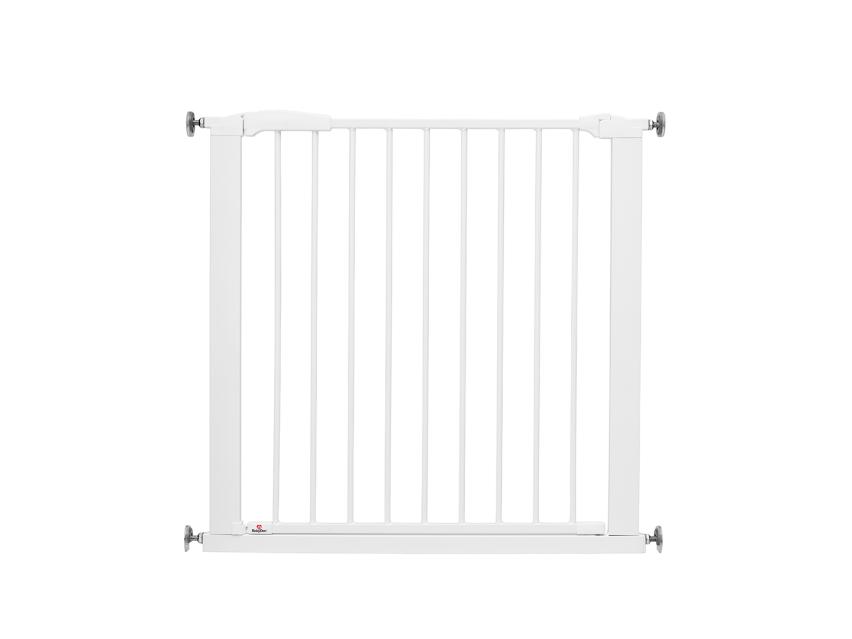 Perfect Close sikkerhetsgrinden er trykkmontert og er en flott løsning for å barnesikre hjemmet ditt. Grinden er tilgjengelig i hvitt og er laget av metall. Den doble låsen gjør at du kan smekke igjen grinden når du har det travelt - uten noen klikkende metallyd.